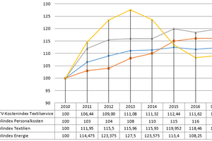 Insbesondere in den letzten Monaten des Jahres 2016 war eine deutliche Steigerung bei der Kostenentwicklung zu beobachten. Das lag vor allem an teilweise wieder anziehenden Energiepreisen und an steigenden Textilkosten.