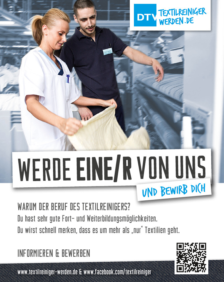 Die nachfolgenden Seiten informieren über die Berufsbilder und Karrieremöglichkeiten in der Textil-Dienstleistungsbranche sowie die Aus- und Weiterbildungsangebote des DTV. Darüber hinaus können sich Ausbildungsinteressierte auch umfassend auf der Seite www.textilreiniger-werden.de über die Karrieremöglichkeiten in der Branche informieren.