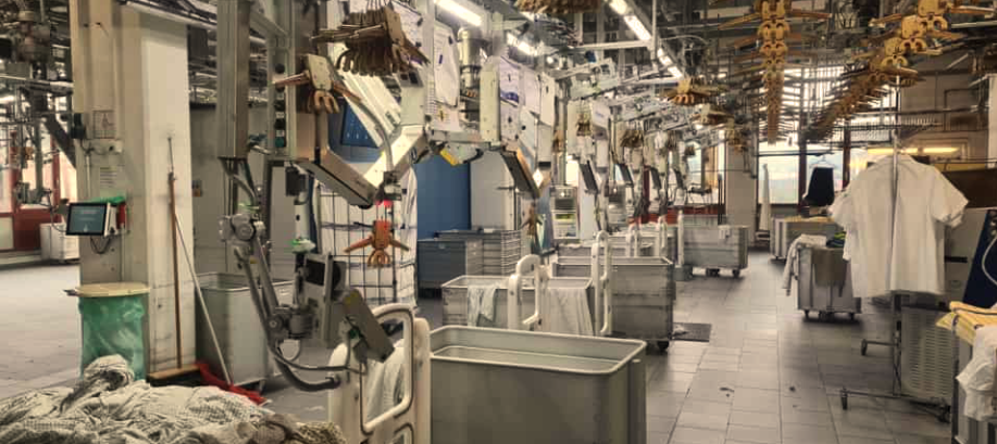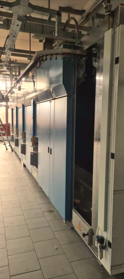 Komplette Kannegiesser Finish-Formteileanlage mit Aufgabestation, Tunnelfinisher und 2 FAX Faltmaschinen
