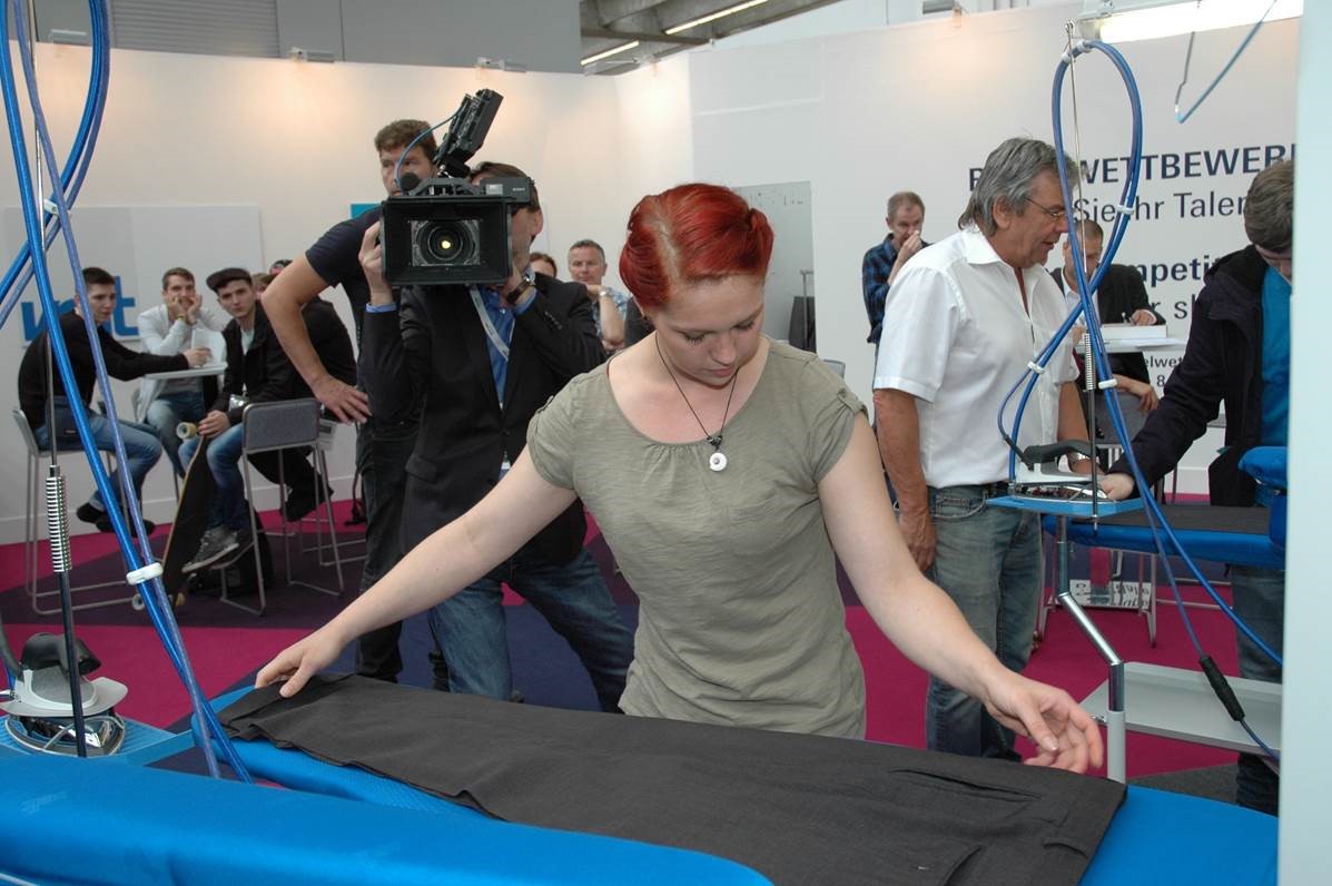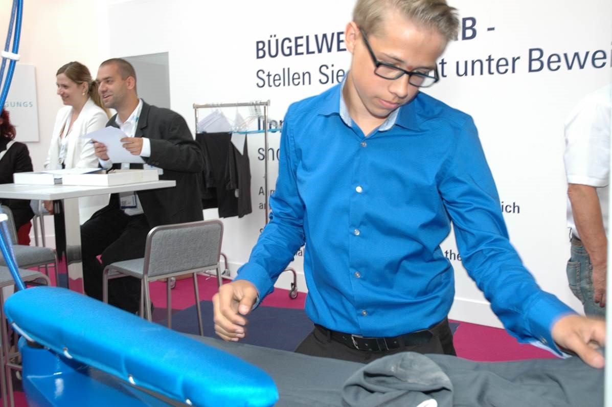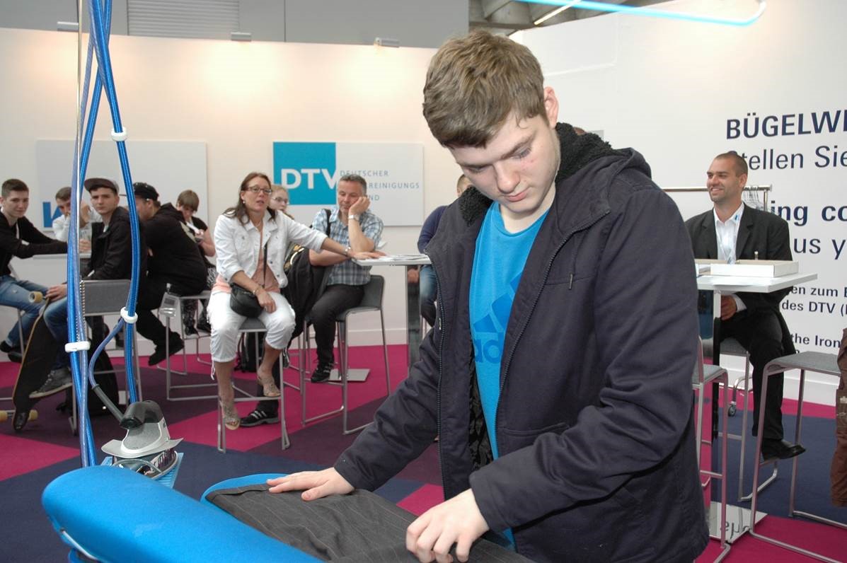 Viele Berufsschulklassen reisten zusammen nach Frankfurt an und nutzten die Möglichkeit, die zahlreichen Innovationen der Branche aus nächster Nähe zu begutachten. Einige stellten sich zudem auch dem Vergleich mit anderen und traten im Bügelwettbewerb des DTV gegeneinander an.