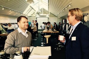 Am Freitagvormittag ging es dann schließlich zunächst in die Räume von Kentaur, dessen Geschäftsführer Christian Beirholm die neuesten Kreationen und Entwicklungen für Arbeitskleidung in den Bereichen Krankenhaus, Pflege und Gastronomie vorstellte. Insbesondere neue Denim-Looks für die Gastronomie und praktische Entwicklungen, wie etwa die Neupositionierung von Seitentaschen bei Kasacks, die ein ergonomisch korrektes Arbeiten erleichtern, wussten hier zu gefallen.