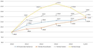 Gleichwohl sind nicht alle Kostenpositionen in gleichem Maße angewachsen. So sind die Energiepreise beispielsweise seit zwei Jahren rückläufig. Auf der anderen Seite sind die Textilpreise und die Personalkosten im vergangenen Jahr deutlich angestiegen und haben damit letztlich dafür gesorgt, dass die Gesamtkosten im Vergleich zum Vorjahr um rund 1,1 Prozent zugelegt haben.