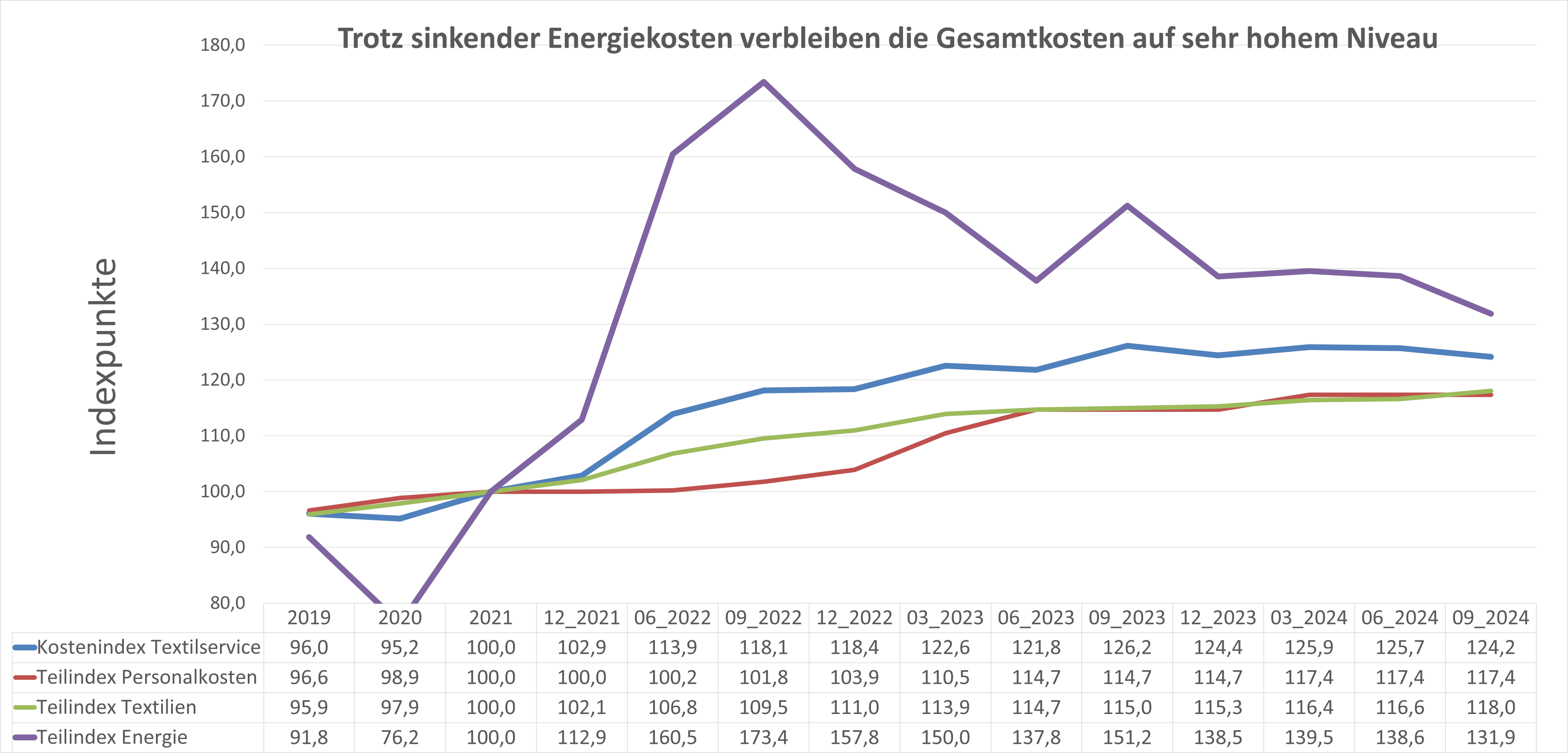 Kostenindex Textilservice weiterhin auf sehr hohem Niveau trotz sinkender Energiekosten im 3. Quartal 2024