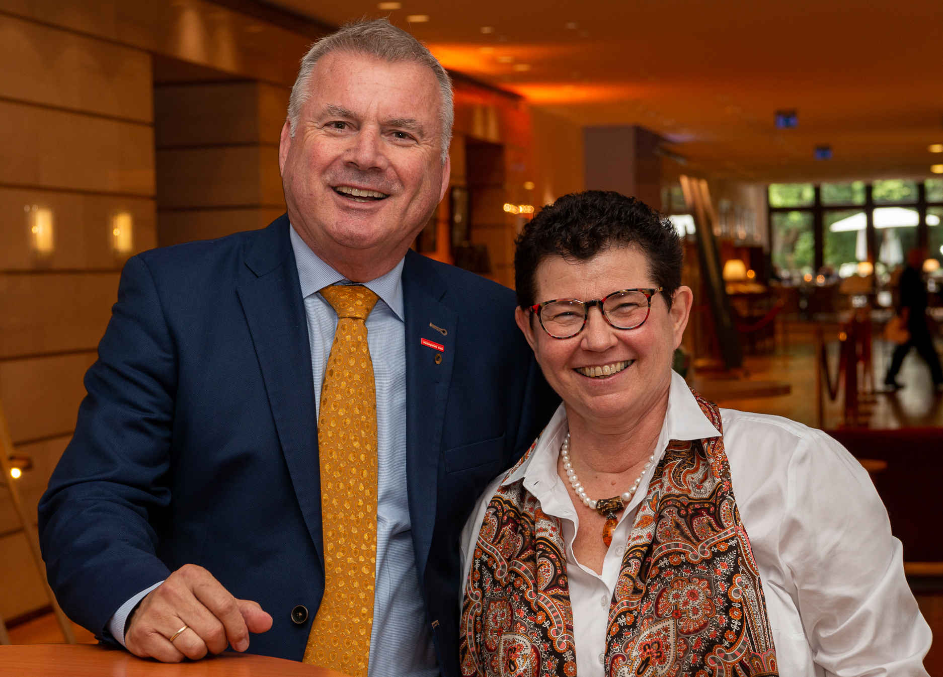 In seiner Rede wiederum bedankte sich Eberhard bei Beate Schäfer für die lange Zusammenarbeit, in der die beiden aktuell noch als Präsident und Vizepräsidentin gemeinsam wirken. Er drückte seine Freude aus: „Ich bin sehr glücklich, dass ich das Amt an dich weitergeben kann, weiß ich doch, dass eine gestandene Unternehmerin mit der notwendigen Branchen- und Verbandserfahrung die richtigen Schwerpunkte setzen wird.“