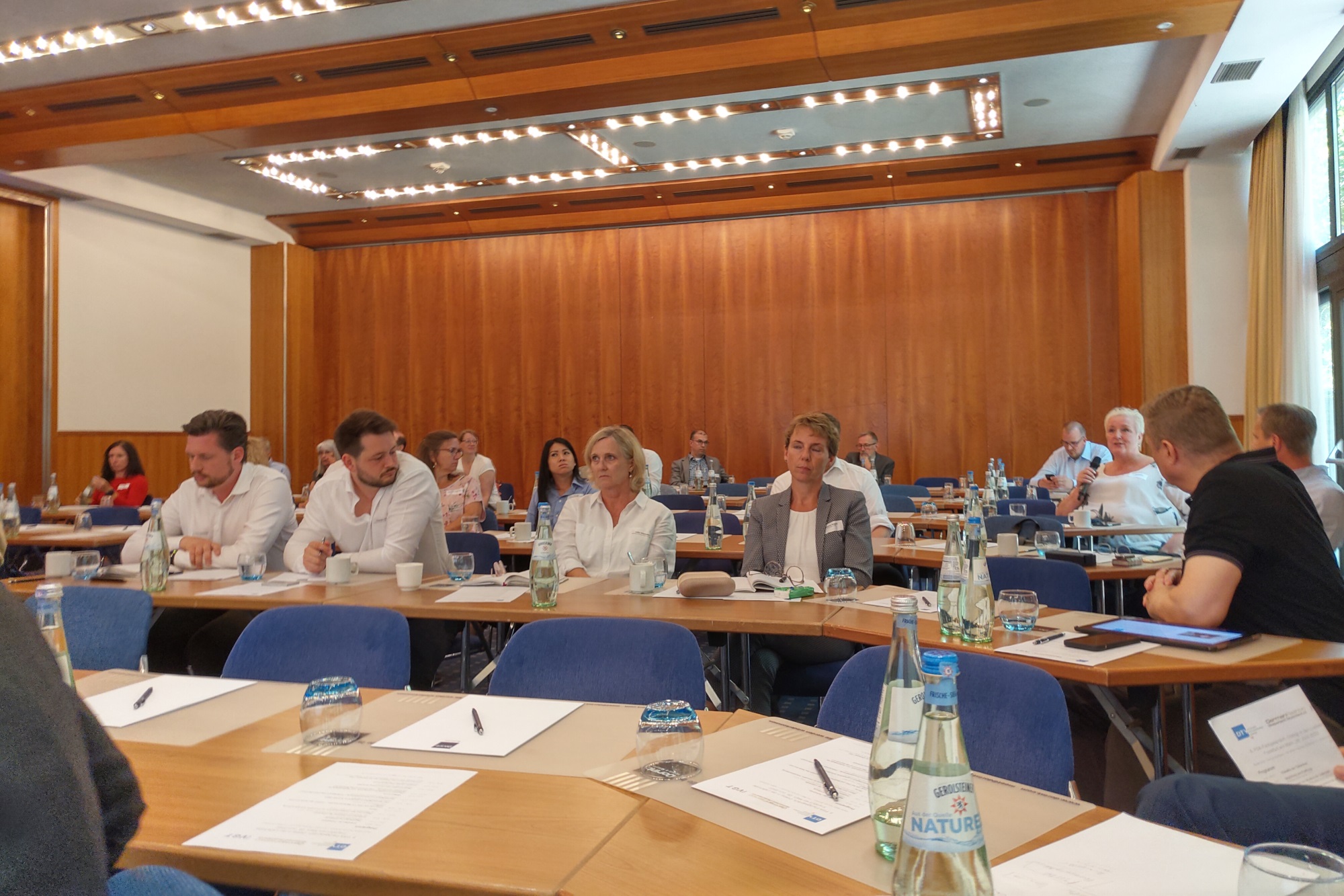 Rund 50 Interessierte trafen sich am 28. Juni 2022, um sich intensiv und entlang der textilen Lieferkette über Persönliche Schutzausrüstung (PSA) auszutauschen und aktuelle Informationen zu präsentieren. Die Branchenverbände Deutscher Textilreinigungs-Verband e.V. (DTV), GermanFashion Modeverband Deutschland e.V. und Industrieverband Garne-Gewebe-Technische Textilien e.V. (IVGT) luden zu der eintägigen Informationsveranstaltung nach Frankfurt am Main ein. Unter den Gästen und Referenten befanden sich die wichtigsten deutschen Hersteller von Schutzkleidung, Vertreter der Vorstufe und des Textilservices, Normungsexperten sowie die Geschäftsführer der Verbände.