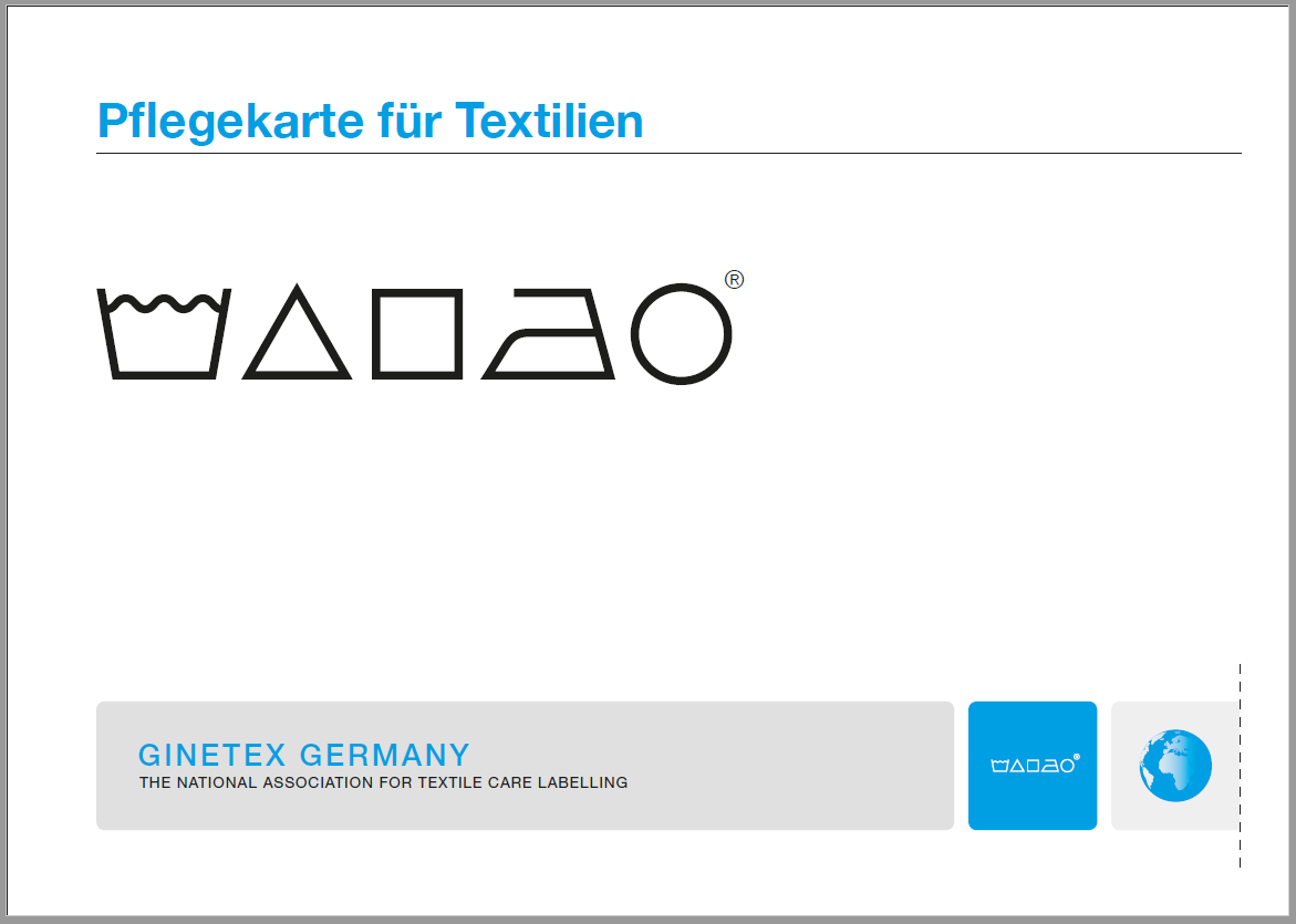 GINETEX GERMANY steht für die Pflegekennzeichnung in Deutschland und informiert und berät Hersteller, Handel und Verbraucher über die angemessene Pflege von Textilien. In Deutschland ist die Pflegekennzeichnung nicht gesetzlich vorgeschrieben, aber findet dennoch weit verbreitet Anwendung. Das Handbuch liefert hilfreiche Hinweise zum Umgang mit den Pflegesymbolen.